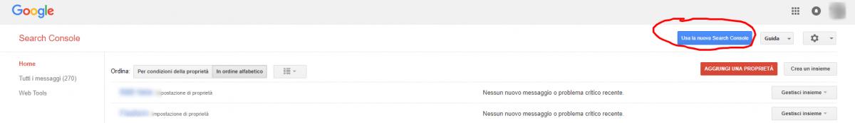 Nel caso della Search Console si deve accedere al servizio da qui: