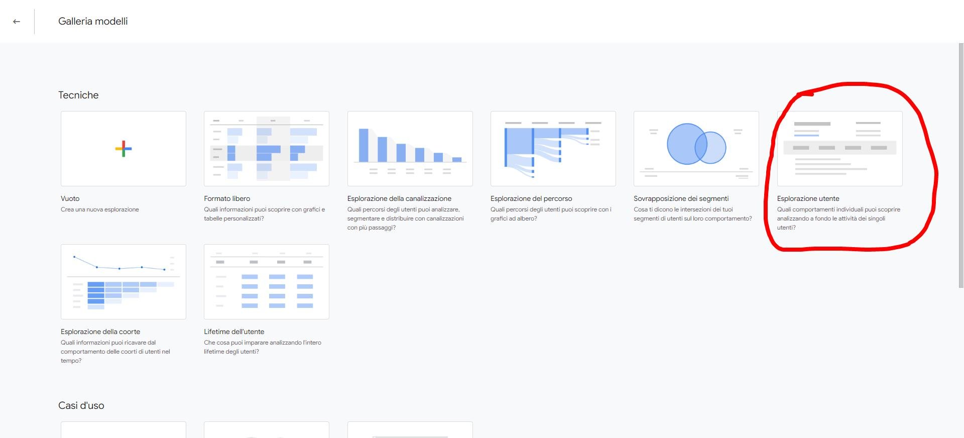 Quello che serve a noi si trova in Esplorazione utente. Cliccateci sopra.