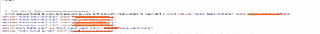 Di recente, ho riscontrato un problema che ha richiesto una notevole quantità di ore per essere risolto. In uno dei negozi Shopify che stavo gestendo, ho scoperto che c’erano più meta tag di verifica del dominio di Facebook con diversi ID Facebook e questo non permetteva la verifica del dominio attraverso il Business Manager che volevo collegare.