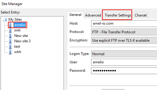 - La seconda invece necessita di una breve impostazione del client Filezilla in questo modo: