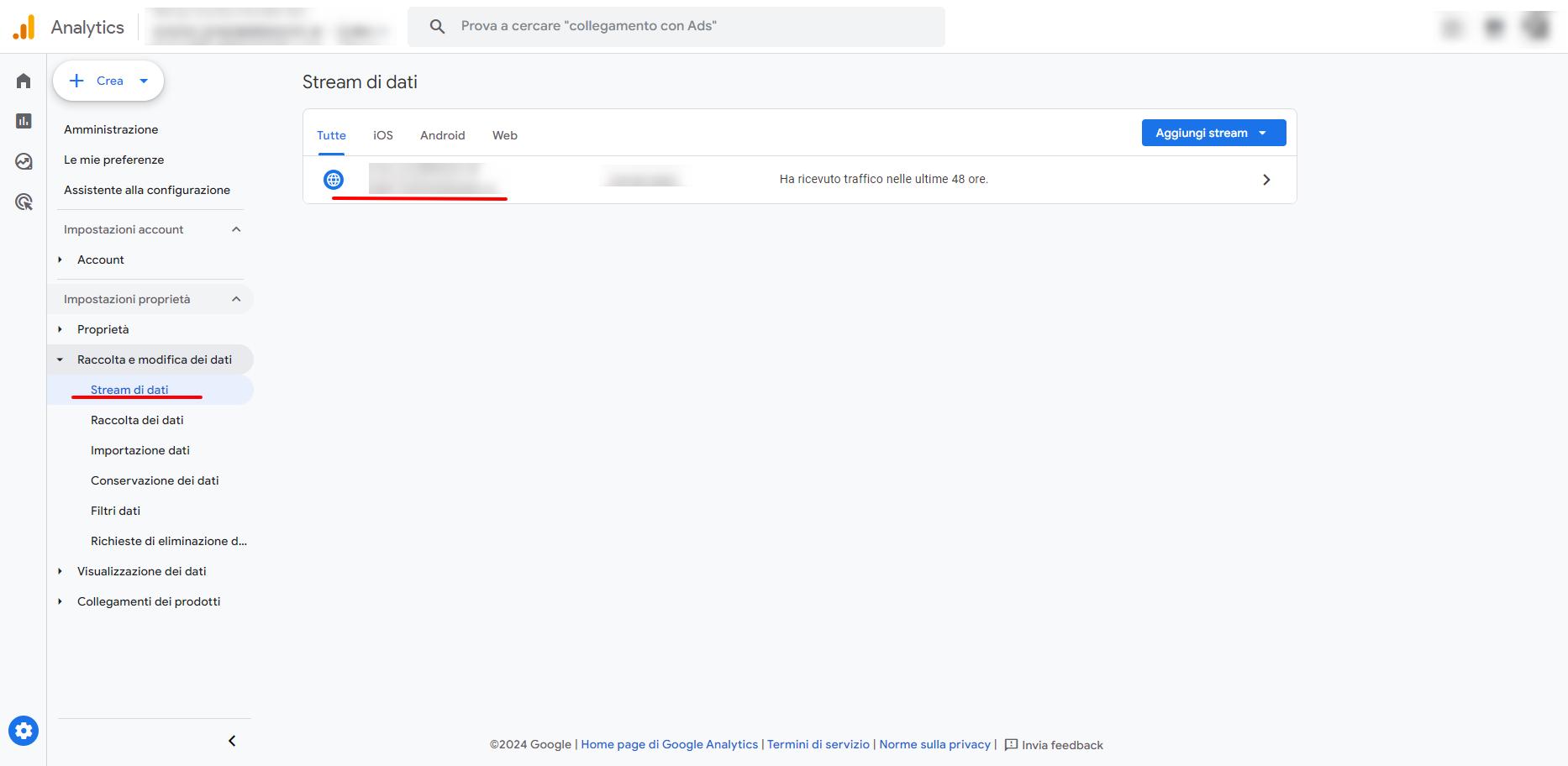 Nella colonna Proprietà, fare clic su Stream di dati.
