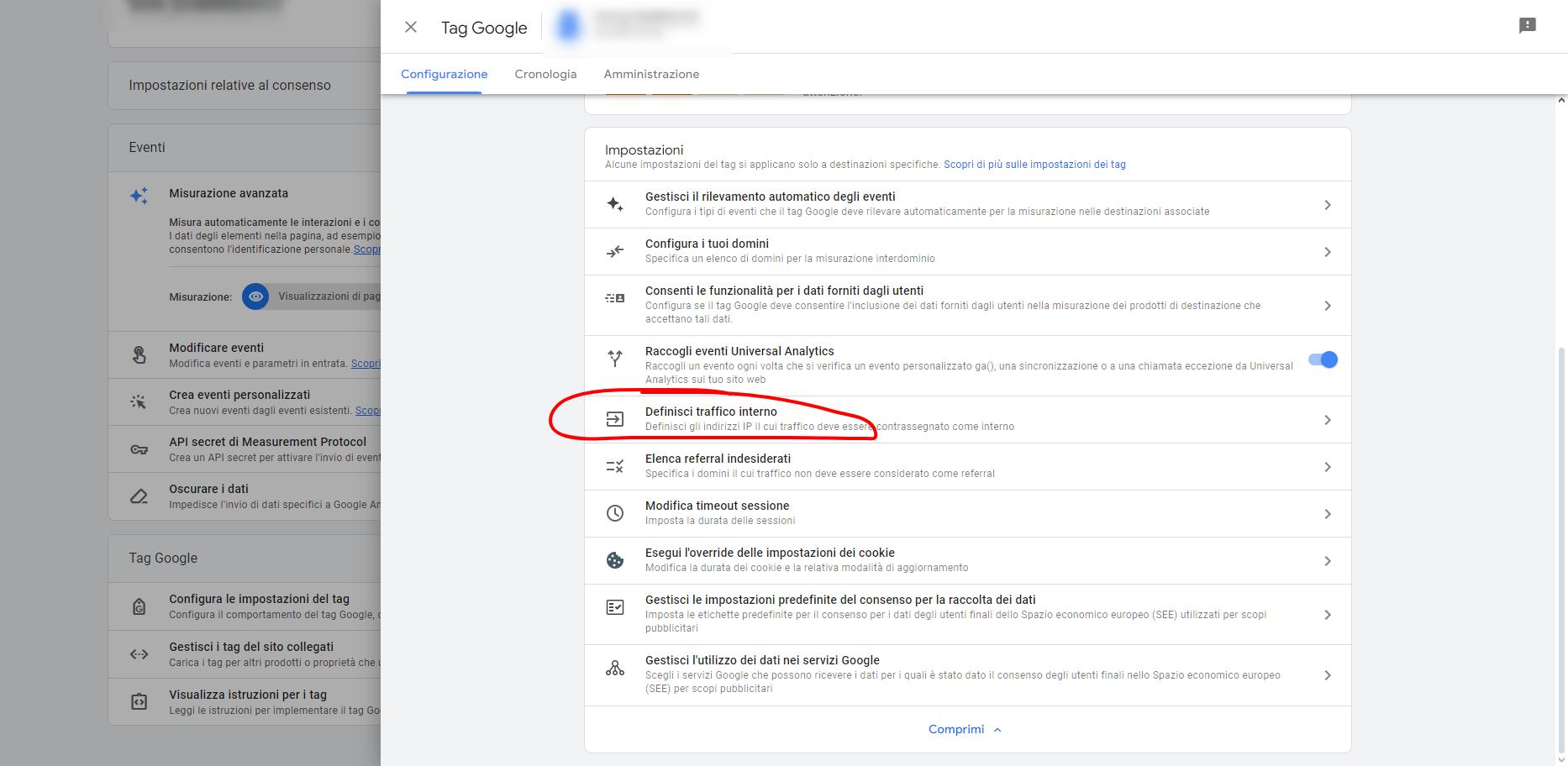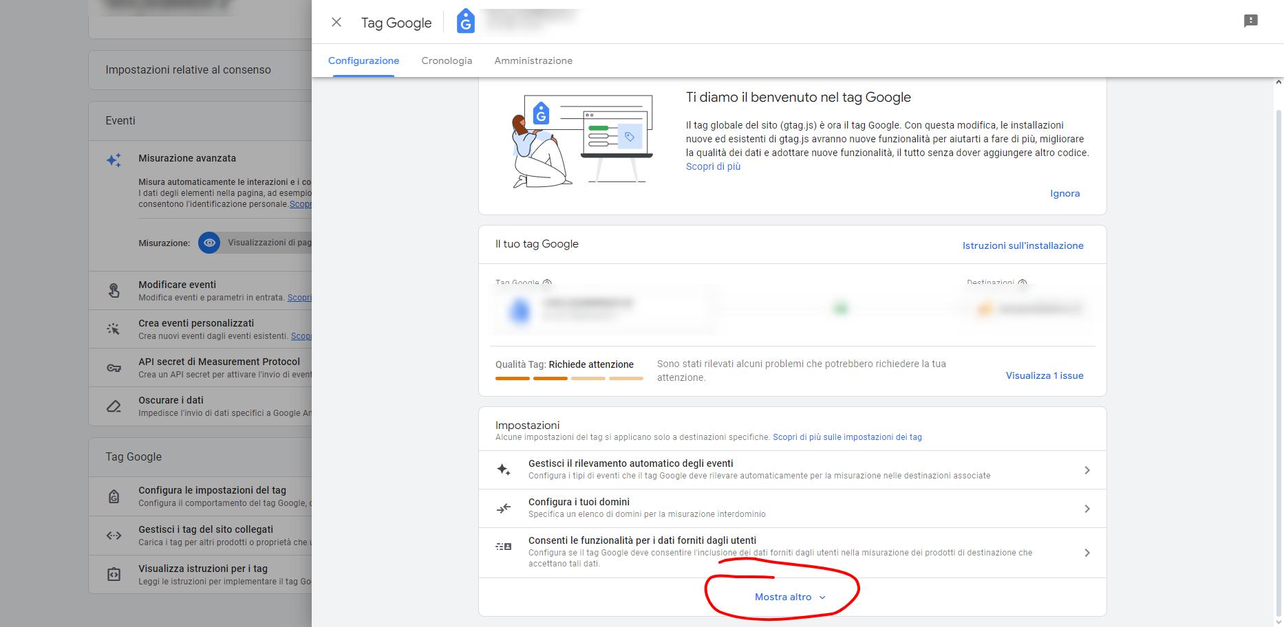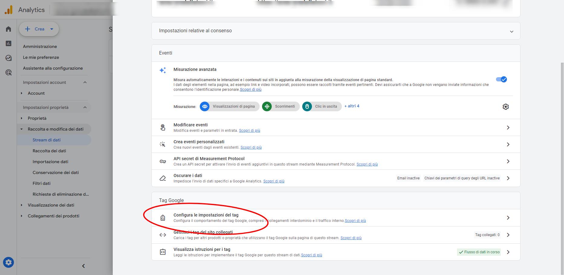 Nei dettagli dello stream di dati web, fare clic su Configura le impostazioni del tag.