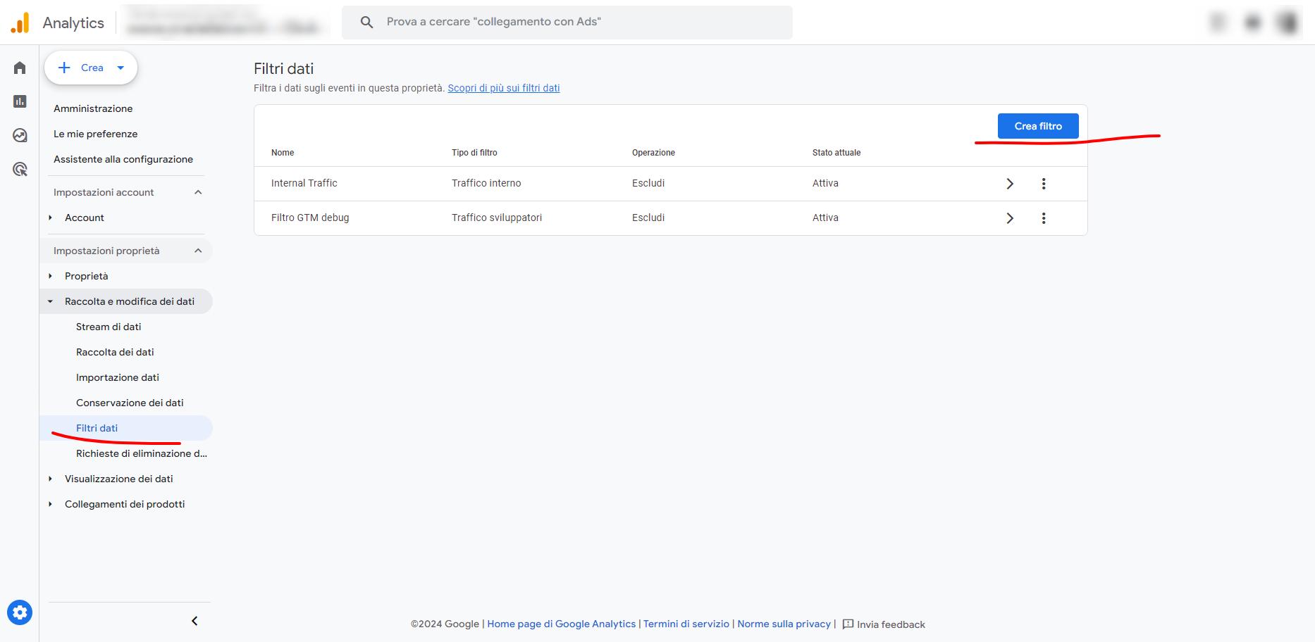 Nella colonna Proprietà, fare clic su Raccolta e modifica dei dati > Filtri dati.