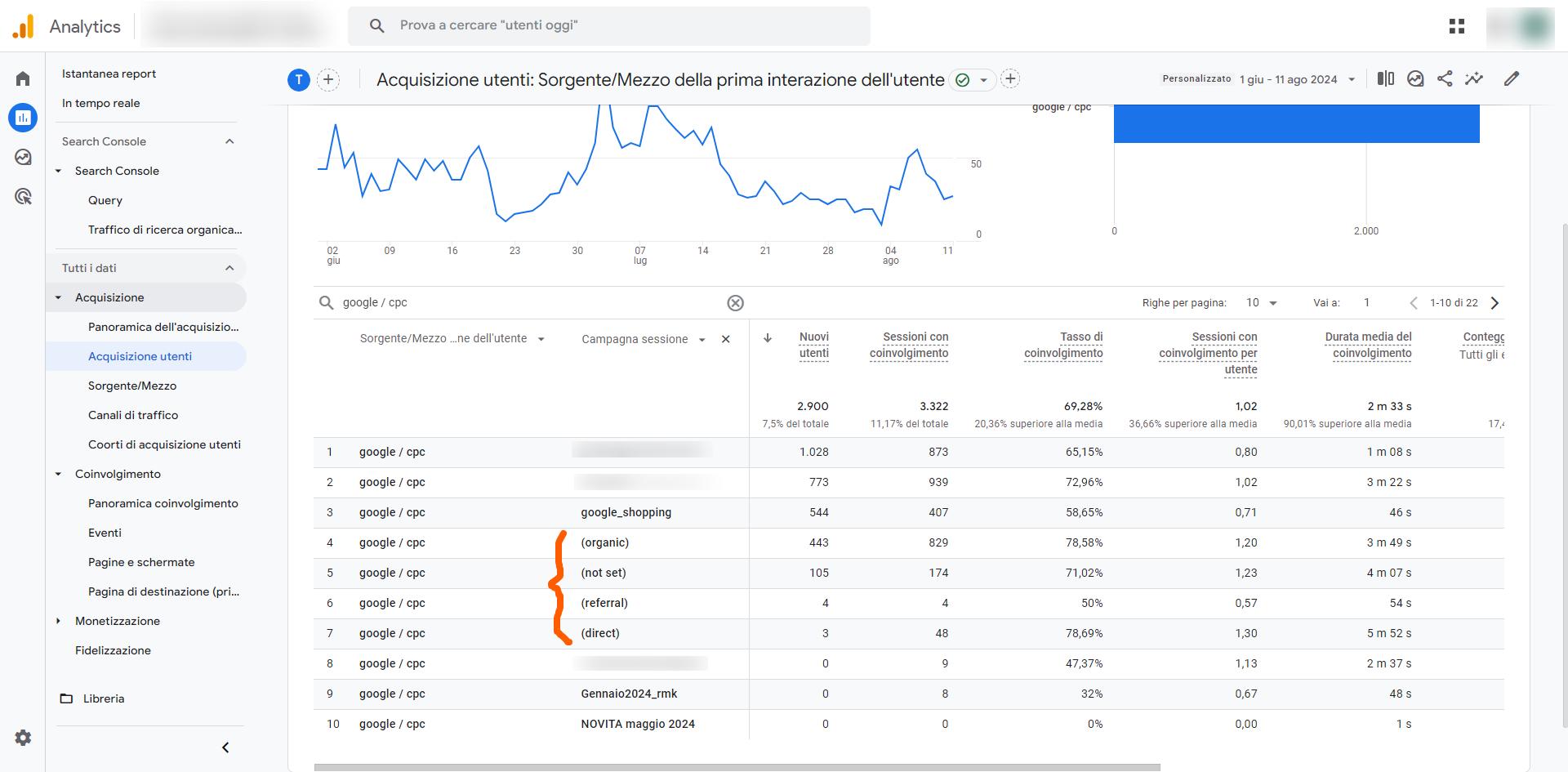 un’altra parte ha registrato invece l’aumento di traffico google / cpc attribuito in modo errato, dunque perdendo il dato di campagna