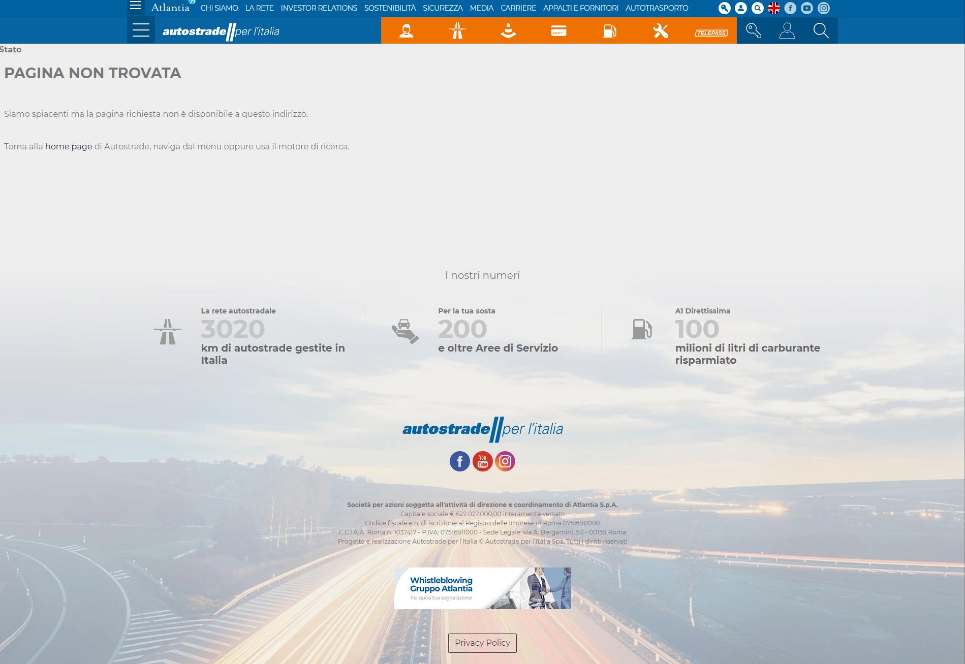 Nonostante una piccola difformità grafica del testo, il resto della pagina mette a disposizione un’ampia gamma di link per tornare sulla retta via.