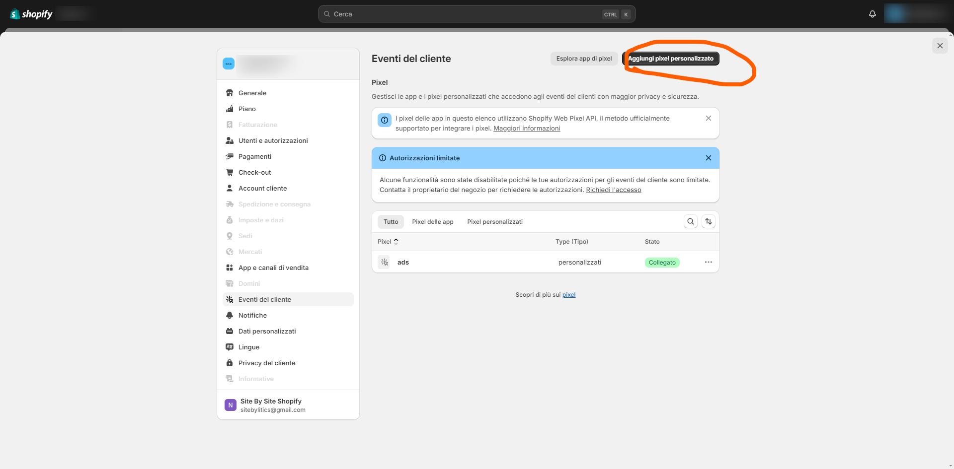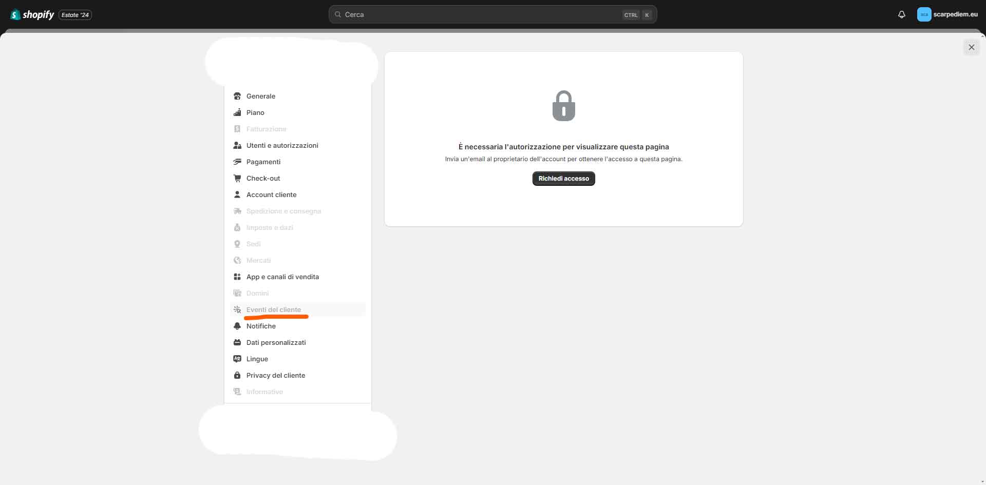 Seguendo quanto consigliavano nel messaggio mi sono quindi spostata su Impostazioni > Eventi del cliente.