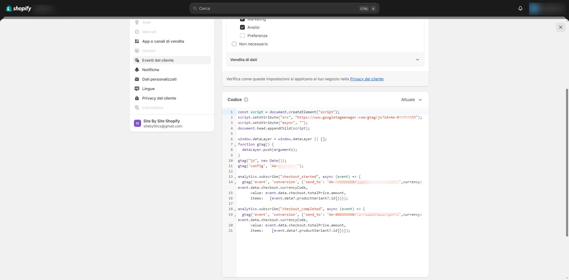 Avevo descritto qui, come effettuare i tracciamenti del checkout di Shopify. Purtroppo queste regole hanno smesso di funzionare e anche la dashboard interna di Shopify è cambiata.